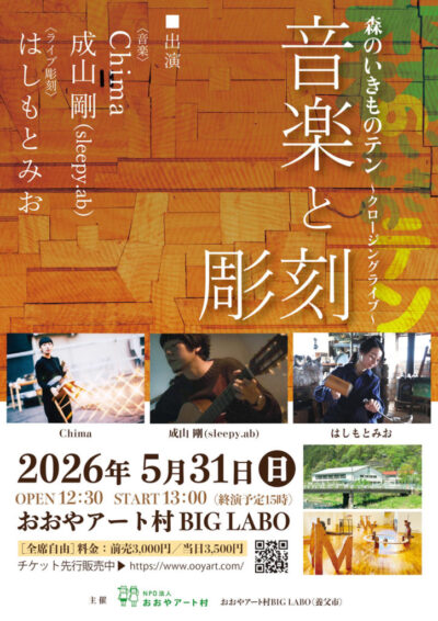 「森のいきものテン」の締めくくりとして、音楽と彫刻が響き合う特別なライブイベントを開催します。