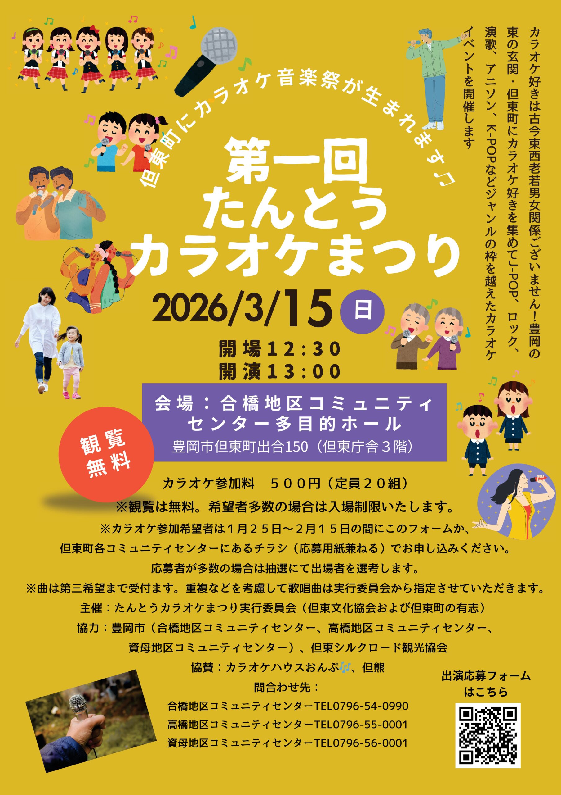 | 申込先 | 豊岡観光協会 TEL:0796-22-8111 FAX:0796-22-8112 メール:toyooka-kanko@toyo-kan.jp |
