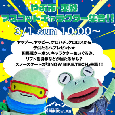 やぶ市・東鉢エリアに人気マスコットキャラクターが大集合します。
