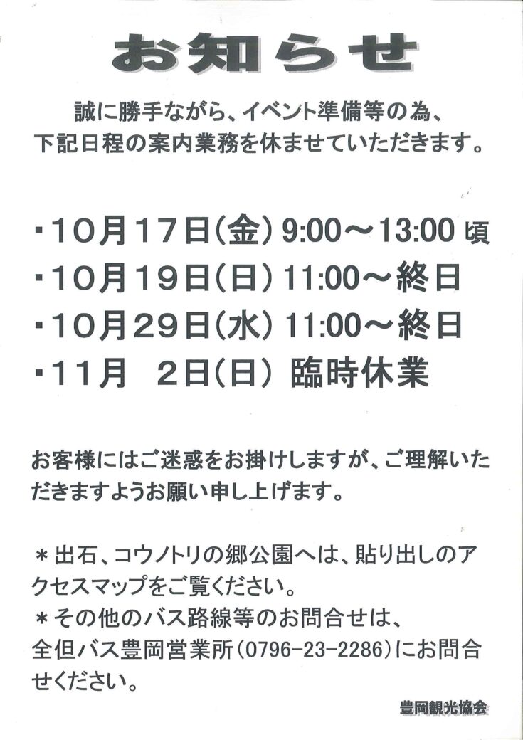 観光についてのお問合せは、「豊岡市役所・観光政策課(TEL:0796-21-9016)」へお願いいたします。