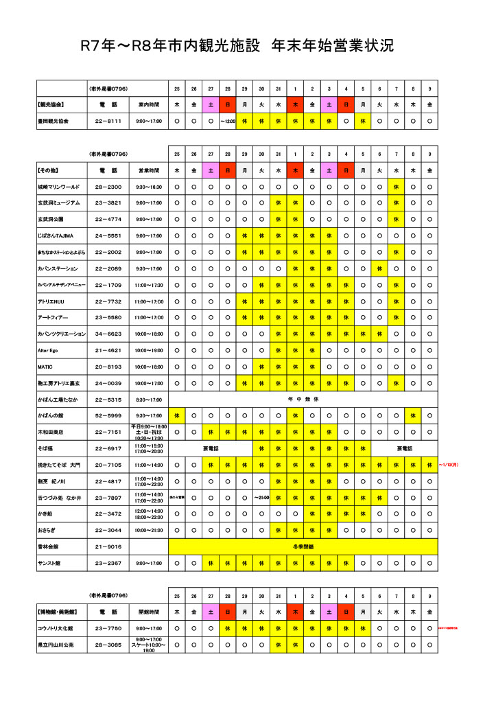 市内観光瀬施設等営業状況についてはこちらをご覧ください。↓