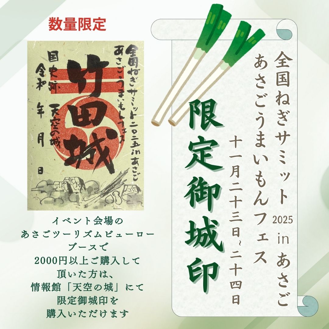 The post 11月23日,24日【全国ねぎサミット2025inあさご】【あさごうまいもんフェス】開催! first appeared on 竹田城跡のあるまち|朝来市観光協会.
